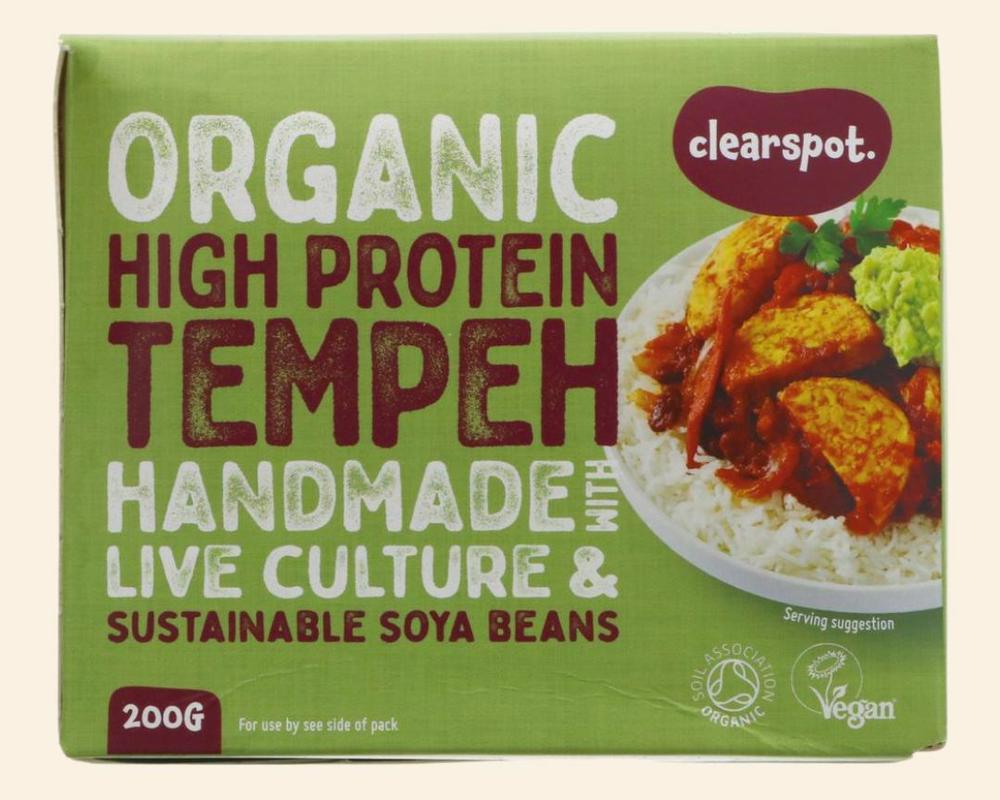 Organic tempeh. Made with whole pieces of organic, non GM soya beans fermented with a live culture and pressed into a dense, high protein base. Incredibly versatile, just slice, dice or crumble into your favourite meal times.