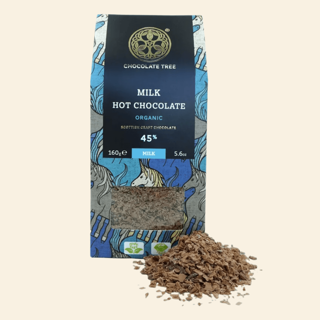 Chocolate Tree source organic cacao liquor from Peru, where the cacao trees grow amongst other plants and wildlife, and work directly with cooperatives who ensure a high price is paid to farmers. Add two tablespoons of these flakes to your favourite hot milk and whisk! 160g