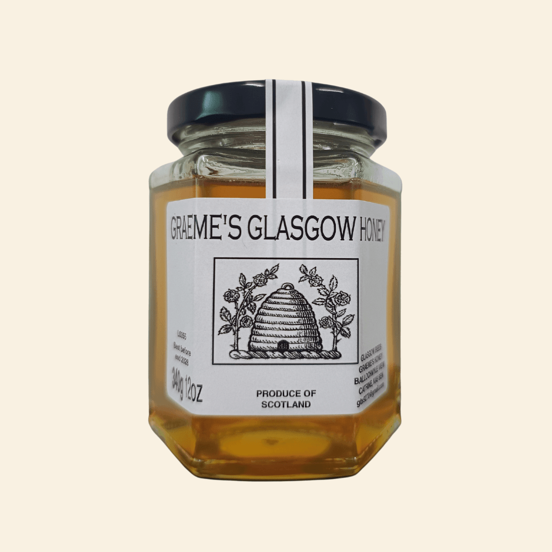 Formerly Ed's Bees. If you live in Glasgow, then there's a good chance one of the bees buzzing on by may be one of Graeme's! Graeme's honey is super local, unpasteurised and not heat-treated, diluted or processed in any way. A true taste of Glasgow. 340g