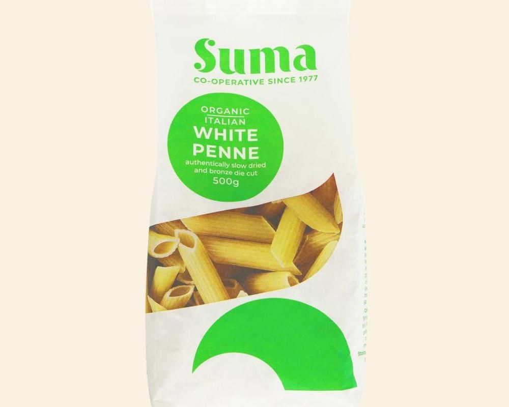 Suma's organic pasta is from Italy and produced using a slow drying process that uses 100% renewable energy. Suma's pasta is made using traditional methods by a co-operative. Packaged in biodegradable and recyclable paper.