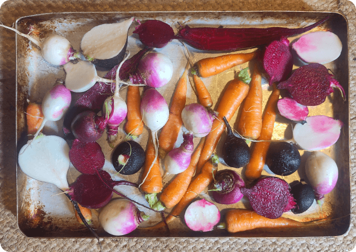 Roast Root Veg with Greens & Smoky Seedy Dressing (CL)